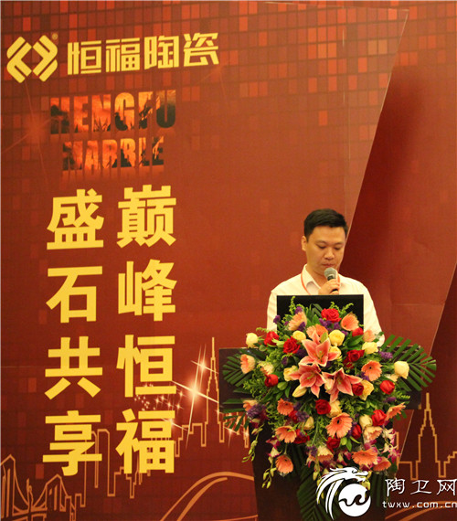 在会议上,恒福陶瓷司董事长冼明宽发表了重要致辞,明确了公司未来发展的方向和目标。同时冼董事长指出2015年是陶瓷行业的寒冬,但不是冰河世纪! 冼董对经销商面对现下严峻市场环境,给予指导性意见,加大公司对经销商营销的支持力度,表示与各经销商一同携手在严峻市场中寻找新的突破,共同前行。