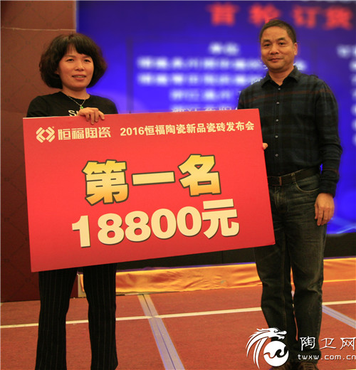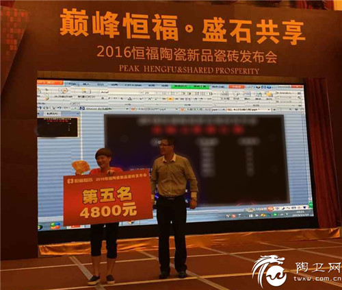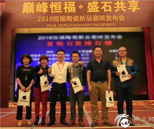 为了感谢新老经销商的辛勤努力,恒福陶瓷答谢晚宴在宴会厅拉开序幕,随着回馈客户大奖的抽出,在三百多名经销商的期待下,市场部经理邹赤峰宣布:此次新品订货会超越预期目标。取得了骄人的成绩。2016恒福陶瓷新品瓷砖发布会也到达了当天的一个高潮。众多经销商表示:恒福极致大理石极具特色和市场竞争力,新的一年销售将形势大好。最后,2016恒福陶瓷新品瓷砖发布会也在充满正能量的气氛中圆满落下帷幕。