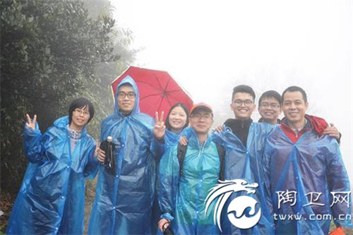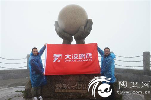 冒着危险,在雨中狂奔,大汉销售精英们无暇顾及身边的美景,一直勇往直前,最终成功登顶,让大汉瓷砖的旗帜,飘扬在广东第一峰的山顶上。