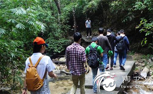 11月15日上午,大汉瓷砖销售精英们满怀期待踏上了阳山挑战极限之旅。小伙伴们首先抵达山脚下的天泉度假村:这里高山环绕,河水清澈见底,是难得的天然氧吧;而大汉销售精英们第一站的任务是要前往深山觅景:寻找天泉瀑布,感受原始风光。