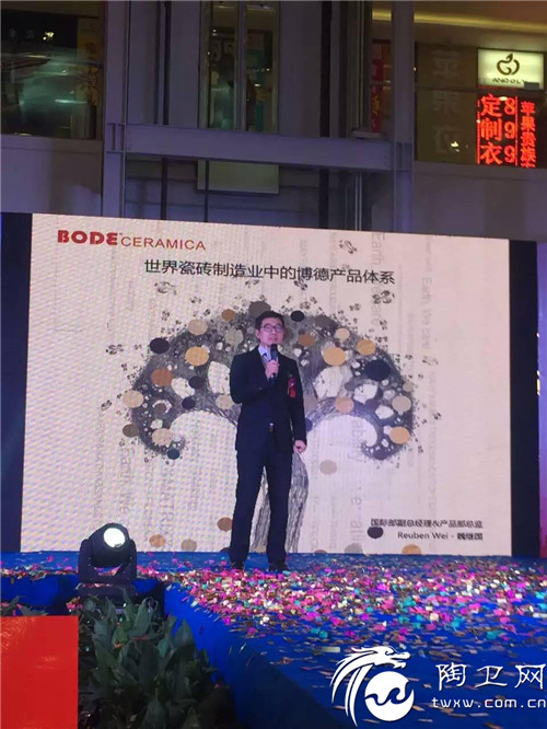 活动特别邀请了博德公司国际事业部副总经理、产品部总监魏继国现场对新品进行全面的在诠释。在他的发言中对博德公司产品技术研发及生产工艺各个关键环节为到场的嘉宾做了一次全方位的讲解。魏总说道:“博德公司2002年成立至今,一直在精工玉石产品、工艺效果上有着很深的研究。发展到现在,我们可以很自豪地和大家分享精工建材产品研发及研发方面的巨大成就!”他重点提到了博德2015年推出具有革命性意义的新产品——精工瓷石。这款震撼的新品不仅全球征集可追溯的石材元素,同时使用全球领先的釉料和墨水发色系统。他强调,精工瓷石采用的是目前国外某知名企业最先进的干粒及胶水套喷技术,博德也是国外某知名企业该项技术在中国大陆的第一家战略合作伙伴,从技术的源头保证了精工瓷石系列产品的优良性质。而针对精工瓷石产品表面硬度研发的重大突破,也是震惊行业的新跨越。