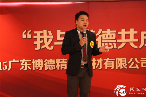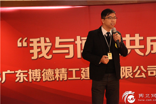 广东博德精工建材有限公司董事长叶荣恒在点评发言时表示,成功都是通过一点一滴的聚集而成的,在成长的过程都是需要付出很大代价,才能够成功。“而这个过程,像魏继国从一个刚毕业的学生来到博德这里,做到现在总监的位置,部门负责人的位置,我相信都是需要一种勇气和坚持,都需要一种耐力,才能够一步一步走向成功,从一个默默无闻的普通职员到一个高级领导的位置。”他表示,今天的所有参赛选手都非常优秀,演讲非常精彩。“今天的演讲,我是非常感谢也是非常感动,大家都表现了对博德的热爱,也表达了与博德同成长的那种决心。我为你们点赞。”
