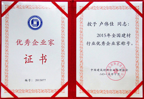 2015年全国建材行业优秀企业家证书
