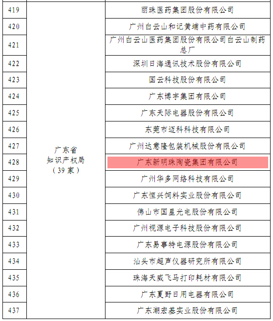 近日国家知识产权局公示2015年度国家知识产权优势企业评审结果,新明珠陶瓷集团入选2015年度国家知识产权优势企业,广东省共有39家企业入选,新明珠陶瓷集团是陶瓷行业唯一入选企业。