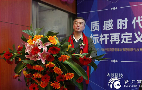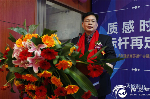 年会在湖南天欣集团董事长王五星精彩的演讲中拉开帷幕,王董事长首先对各位嘉宾的到来表示衷心感谢和热烈欢迎,并回顾了天欣科技近年来的发展历程和取得的成就。在面对国内国际全球经济下行压力的增大、国内房地产调控和当前建筑陶瓷生产企业停工停产增多,销售低迷的严峻形势。王五星董事长从加强内部精细化管理,提高生产效率;加强品牌及硬件设施建设,建立产学研战略联盟;加强国际交流,扩大国际出口;加强企业文化建设与队伍培训,提升企业发展后劲四个方面阐述了天欣科技之所以能做到逆市飘红的原因。