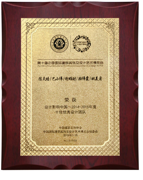 近日,中国建筑装饰及设计艺术博览会(简称“设博会”)在北京国际会议中心隆重召开。广东博德精工建材有限公司(简称“博德公司”)设计部总监暨总设计师陈天培荣获“2014-2015年度中国室内设计百强人物”奖项,获奖项目:博德瑞安旗舰店;设计部陈天培/巴小伟/谢雄财/骆伟霞/姚美菊 团队荣获“设计影响中国~2014-2015年度十佳优秀设计团队”奖项,获奖项目:十堰博德家居实景体验中心。