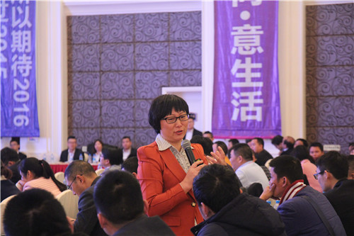 28日上午,会议尾声,广州建众智业总经理、首席顾问侯定文压轴作题为“市场转型期的经营智慧”的演讲。“当你决定成为创业者或老板的时候,其实你已经踏上了一条人生的不归路,”侯定文掷地有声。她向现场经销商传授“不抱怨”的智慧,结合实际案例分析,生动讲解如何打造终端团队,如何取得市场营销效益的秘诀。