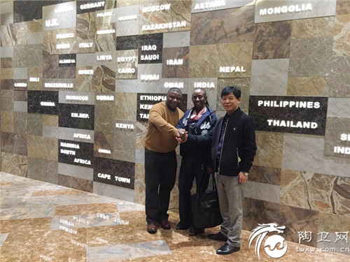 亚细亚集团副总裁张宏辉(右)亲切接待了远道而来的非洲友人