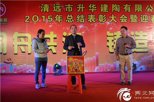 昨晚,2016年1月9日,农历十一月三十,升华陶瓷企业工厂2015年“同舟共济·铸造辉煌”总结表彰大会暨迎春晚宴在广东清远生产基地火热上演,企业董事长何标成、企业总经理张蜜敬、三品牌营销中心各部门人员、清远工厂全体员工等近两千人出席了本次宴会。升华人欢聚一堂,回望2015年努力奋拼的成果,举杯共同祝福升华更加辉煌的明天!