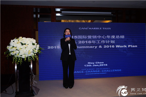 简一大理石瓷砖国际营销中心总经理陈梅女士发表年度演讲