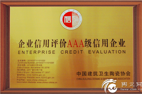(金意陶获AAA级信用企业称号)
