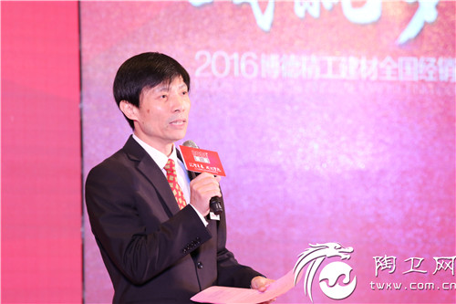 广东博德精工建材有限公司董事长兼总经理叶荣恒先生精彩的开幕致辞拉开了。随后,在分析了当今国际及国内的经济形势之后,叶董事长向大家指明了博德公司今后的发展方向。同时,叶董事长还在现场宣布了一个重大的利好消息:2016年博德精工建材继续火力全开,在品牌建设大手笔投入,博德公司将在全国108个主要高铁站点投放大型广告,这意味着博德将进一步深化品牌的传播,也标志着博德精工建材将迈入一个更广阔的市场!