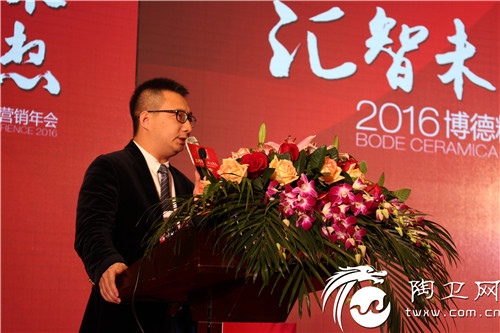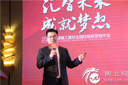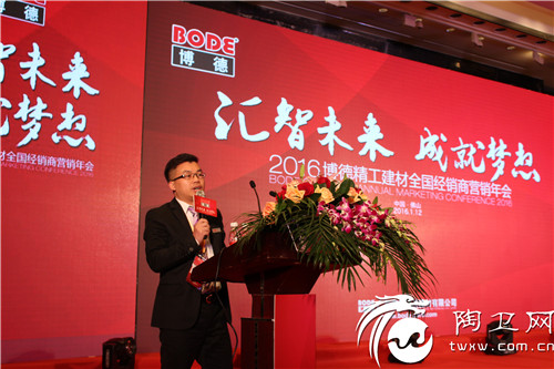 随后,新加入博德公司承担博德事业部总经理要职的秦海胜先生为大家带来了《励精图治:共创未来》的重要讲解。2015年,陶瓷行业瞬息万变,谁能先洞悉行业变化与市场走向,谁就能在市场上抢得先机。通过一系列的专业数据分析,秦总给大家分析了现阶段的市场环境,同时,也向大家展示了博德品牌的营销思路。演讲的最后,秦总提出“厂商一体·聚力共赢”。相信,在秦总和刘总的带领下,2016博德事业部将迈向更大的辉煌!