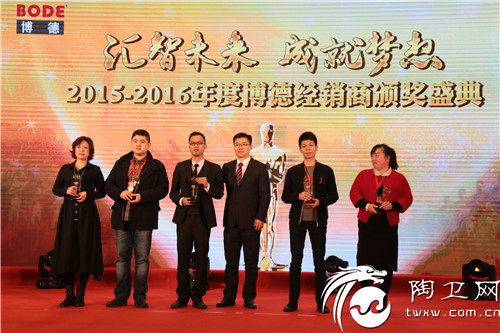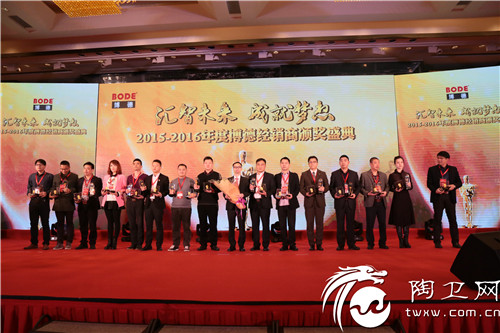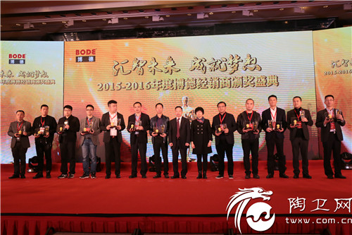 经销商作为博德品牌在终端营销推广的主体,是政策和战略的最终执行者,是品牌面对消费者的窗口。为了鼓励先进,树立典范,年会上设立了“博德金牌经销商奖”、“博德优秀经销商奖”、“博德新锐经销商奖”、“博德杰出经理人奖、“博德最佳展厅奖”以及“博德忠诚朋友奖”等一系列奖项,对2015年表现卓越的一批经销商进行了表彰。