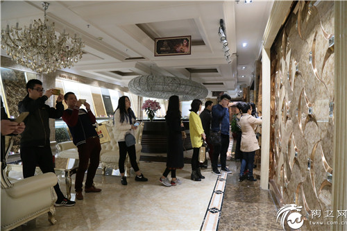 设计师们观看气势宏大的企业宣传片,整体了解企业概况,然后从文化长廊、工厂模型中认识博德的企业文化与生产规模。随后,姚经理带领大家参观VIP展示区,展示区运用精工玉石、珍石、宝石产品,营造了高级会所、高级别墅空间,将产品的雍容华贵表现得淋漓尽致。