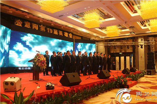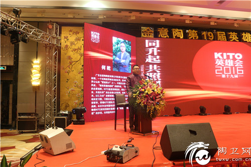 2016年1月24日下午,金意陶第19届英雄会在佛山希尔顿酒店召开。何乾在致辞中表示今天是特殊的一天也是非常有意义的一天,因为金意陶在今天搬到智慧新城了;另外,来广州二十多年,第一次在南方见到雪,这也意味着2016年金意陶以及所有朋友们有个好的兆头。