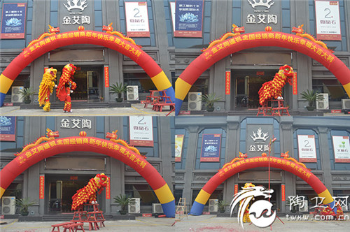 金猴献瑞财源广,银树呈祥花果硕。锣鼓喧天,鞭炮齐鸣,2016年2月18日(正月十一),伴随着精彩的舞狮表演,陶瓷一线品牌金艾陶瓷砖正式启市。金艾陶瓷砖品牌董事长携全体员工祝大家:猴年万事顺利,事业步步高升!