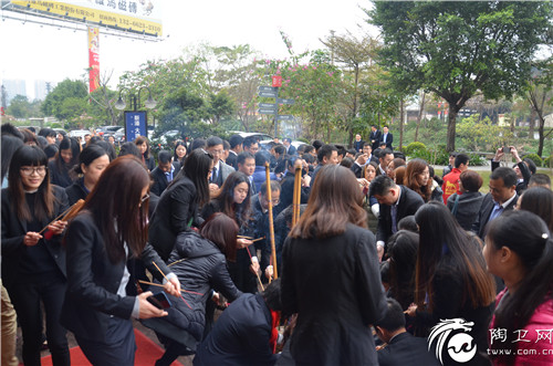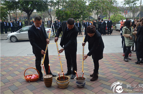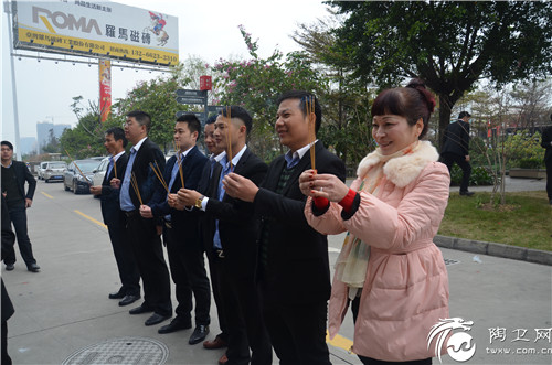 拜神仪式首先由广东昊晟陶瓷有限公司营销总经理翁文平、广东昊晟陶瓷有限公司产品拓展部经理关宗传、广东昊晟陶瓷有限公司财务部经理罗燕清开头,壹號事业部、新濠事业部、产品事业部等部门人员依次上香,祈求2016年公司业务增长,员工安居乐业!