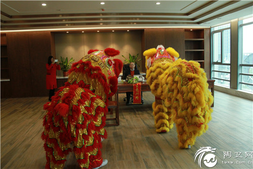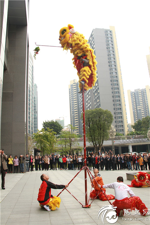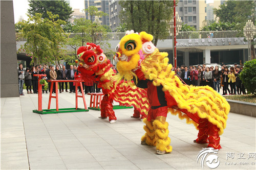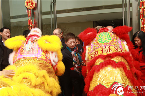 上午11点08分,金意陶2016年开工仪式正式开始,一对醒狮在金意陶智慧新城新办公楼门口尽情欢舞,随着锣鼓快、慢、轻、重,忽而翘首仰视,忽而回头低顾,忽而回首匍匐,忽而摇头摆尾,千姿百态,妙趣横生。随后醒狮伴随着阵阵锣鼓声来到金意陶“智慧新家”,给总部的家人们送去新春的祝福,现场气氛热烈,人人齐声喝彩。