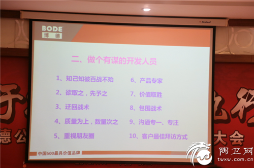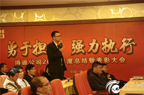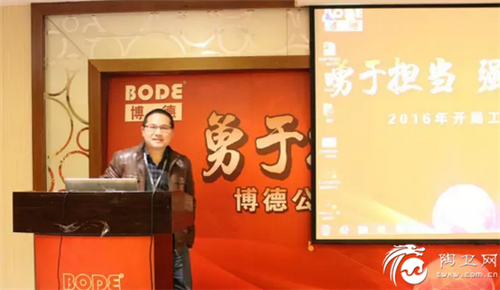 2月20日上午,博德公司产品部产品设计主管张春艳详细分析了2015博德新品的突破技术;随后,博德事业部终端推广部经理李良锋以《决胜终端推广》为题,向大家展示了博德2016终端推广的方向。