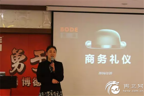 在培训会的最后,博德公司市场策划部培训主管何雪娇通过讲故事的方式,幽默地给大家传递了在商务接待过程中关于个人着装、站姿、吃饭等方面的注意事项。通过培训,提高了公司员工的整体职业素养。