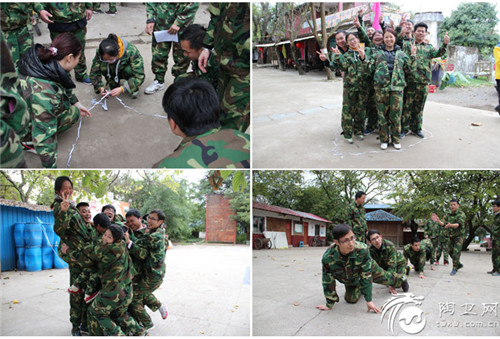 拓展训练的主要项目有《乘风破浪》、《破译密码》&《寻找神秘人》、《扎马步》、《决战沙场》、《挑战150》、《定向争霸赛&自力更生》、《篝火拉歌晚会》、《行军拉练》、《沙漠掘金》等,每个项目都有其特定意义,都需要队长、队员发挥个人和集体的智慧去共同完成!经过列队、分组、选队长、起队名、喊口号、唱队歌等,很快便成立了“神勇队”、“火狼队”、“超越队”、“向日葵队”等四个小队,在训练的过程中,每个人的优势和特长都会显露出来,问题和不足也同时被发现!而最有可能胜出的,就是善于扬长避短、齐心协力、目标一致的小队!