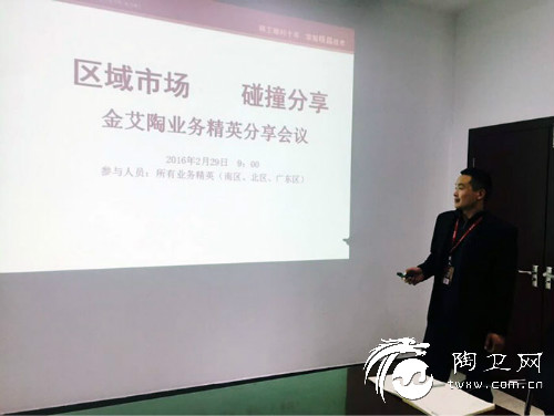 一年之计在于春,春天是蓬勃向上的季节。为了提高销售精英的综合业务能力及专业知识,2016年2月29日,陶瓷一线品牌金艾陶瓷砖在总部展厅会议室举行了《区域市场 碰撞分享》—业务精英分享会议,金艾陶瓷砖品牌领导及销售部所有业务人员参加了此次会议。