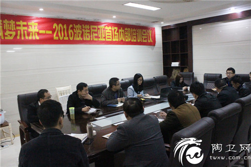 2月29日,“扬帆起航 筑梦未来”2016波诺尼亚首场内部培训会议在总部营销中心召开,公司领导以及全体营销中心人员出席了此次会议。此次培训会,一是为应对市场的新局面,提升企业对市场的快速应变能力,提高企业的服务质量;二是为提升员工对公司产品和体系的熟悉,增强员工之间的学习氛围;三是强化营销渠道管控,提升波诺尼亚在终端市场的品牌竞争力,统一思想,上下齐心,完成2016年的任务目标。