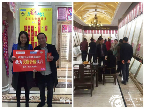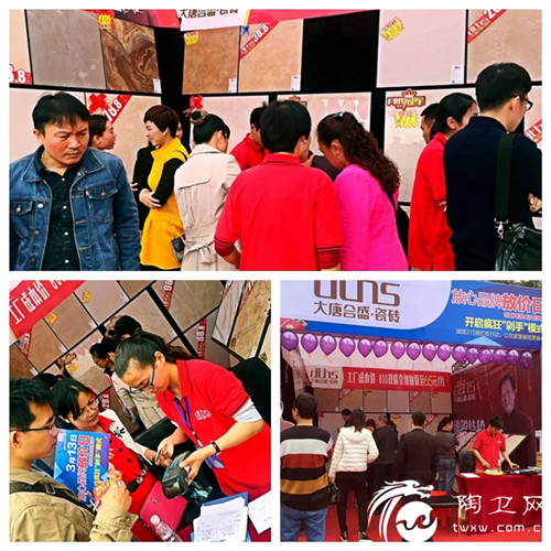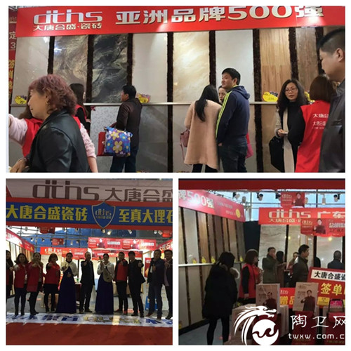 海口、镇江、惠州、宜兴、沂水、扬州、扬中、英德、黄埔等各地经销商捷报频传:海口3·15期间亮相海南广播电视总台第二届家居建材节,大唐合盛瓷砖展位人头攒动,火爆的人气引起当地电视台的关注;惠州3·15期间凭借全城最优惠的价格最贴心的服务,吸引了众多消费者到场排队购砖;镇江亮相2016镇江首届家居建材博览会,二天时间内展位人气火爆,签单数量节节攀升……