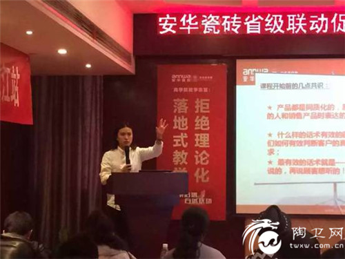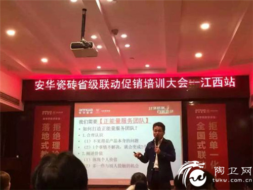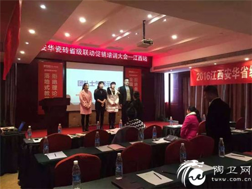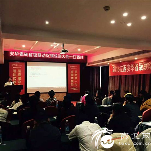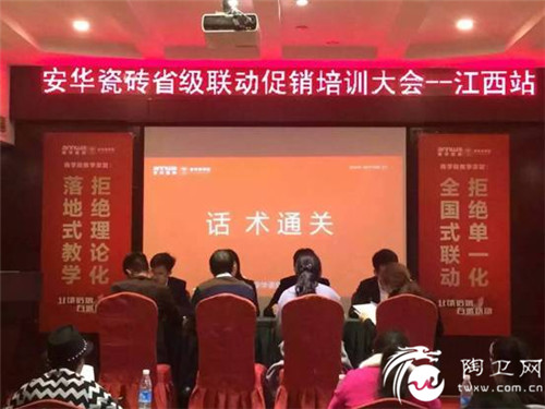 安华瓷砖2016全省联动大型促销活动已全面启动,首站来到了有着“物华天宝,人杰地灵”之美誉的江西,安华瓷砖公司总部特派T5+1项目帮扶团队,围绕“创业绩、练团队、强信心为培训总目标,经过两天一夜紧张的学习和通关,安华瓷砖省级联动T5+1项目培训大会——江西站在掌声、欢笑、和收获中完美落幕。