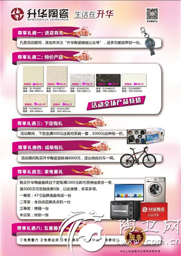 不仅有三大国际名模助阵,带来精彩表演,与您亲密互动,升华陶瓷在此次活动更是坚持“厂家直供·厂家定价·厂家监督”的原则,以最大的诚意给青岛人民带来最优质的产品、最优惠的价格和最满意的体验,以及惊喜礼品、豪华大奖等等大礼派发。