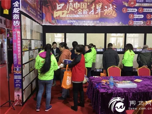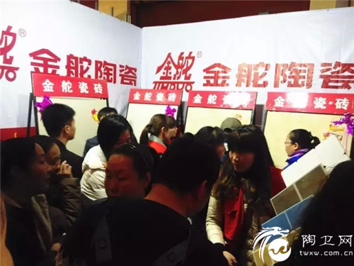 3月5日,滁州体育馆内,一场联合多家知名品牌的家居建材博览会正在上演。此次活动金舵展厅内铺置各类瓷砖,供顾客亲自体验产品,精致的瓷砖加上独特的展销方式,让顾客流连忘返,当天人气爆棚在当地掀起踩砖狂潮,金舵瓷砖开年首战大捷,收获50单!