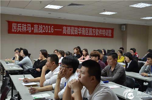 2016年3月20日,佛山,绵绵细雨为街道染上一层阴霾的灰幕。高德瓷砖中国运营中心总部大楼却是人头攒动,气氛热烈,“厉兵秣马 赢战2016——高德瓷砖华南区精英特训营”正在盛大召开。高德瓷砖营销总经理王孝红、副总经理崔平亲临现场指导,来自广东、湖南、广西、福建、浙江等五省多地的一百多名精英导购员会聚一堂,一起聆听、学习精英特训课程。