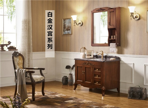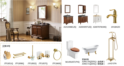 美式古典风的白金汉宫系列浴室柜搭配罗浮宫1842龙头、汉斯4号古典五金件、奥斯卡1149坐便器、梦露8号浴缸以及罗浮宫2137落地浴缸龙头,浓郁的美式古典气质,简洁而不失浪漫奢华。