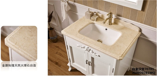 台面材质均采用天然大理石,材料硬度高、光泽度好,釉面感强,纹理富有张力,增添浴室柜厚重与尊崇感。