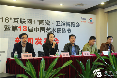 3月22日上午,2016“互联网+”陶瓷·卫浴博览会暨第13届中国艺术瓷砖节新闻发布会在瓷海国际商务中心举行,禅城区经济和科技促进局常务副局长李凯、副局长李玲玲、电子商务办公室常务副主任杨健华,佛山科学技术学院工业设计与陶瓷艺术学院陶瓷艺术设计系系主任吴斌,佛山电子商务协会秘书长刘明明,瓷海国际·佛山陶瓷交易中心董事副总经理林莹、董事助理黄琦玲,阿里巴巴佛山产业带优企公司总经理、万企电商学校校长郑伟源,佛山新媒体科技有限公司总经理张华,JNJ马赛克市场部任兴,以及近四十家媒体代表出席,共同见证第13届中国艺术瓷砖节的创新突破以及瓷海国际在“互联网+”方面的布局。