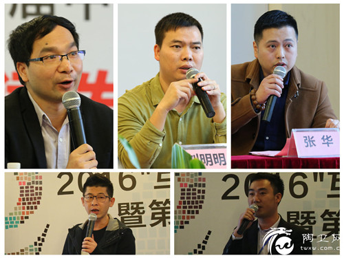 JNJ马赛克市场部任兴、佛山新媒体科技公司总经理张华分别从马赛克艺术与建陶产业在新媒体上的应用发展进行讲解,瓷海国际·佛山陶瓷交易中心策划总监蔡汉柯则从展会形式、渠道、展馆等三大方面详细介绍第13届中国艺术瓷砖节的创新与突破。