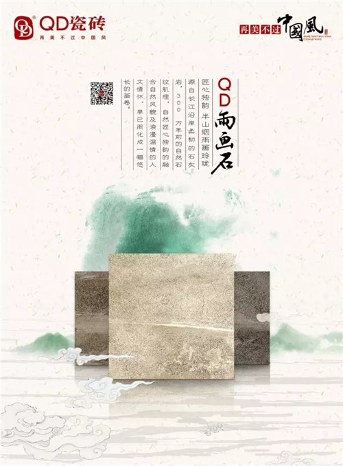 自2015年QD瓷砖进入品牌升级的第三阶段,QD瓷砖提出“再美不过中国风”的品牌定位,从品牌VI、形象画面到产品系列、展厅设计等方面进行全维度的品牌塑造。新的形象风格为消费者带来更为震撼的空间体验。一个品牌,一个风格,一种生活方式,QD瓷砖将中国传统文化与现代人的生活态度、生活方式、审美情趣结合在一起,传承创造一种独具中国特色的装饰风格,把“再美不过中国风”的风格定格在消费者面前。