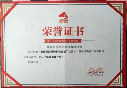 在这场被业内公认为“奥斯卡”的品牌盛会上,经过两个多月的报名征集和半个多月的专家评审,凭借着独一无二的产品技术与美轮美奂的装饰效果,蒙娜丽莎瓷砖罗马宝石系列在上百家企业的角逐中突围而出,获得瓷砖类“年度最佳产品”殊荣,成为行业新锐典范!
