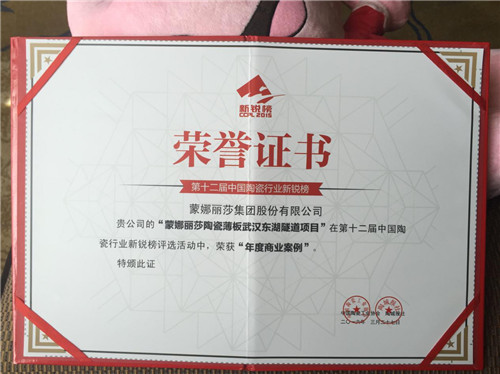 3月27日,由中国陶瓷工业协会、陶城报社主办,有陶瓷界“奥斯卡”之称的“第12届中国陶瓷行业新锐榜颁奖活动”,在湖南长沙万达酒店隆重举办。在本次颁奖典礼上,蒙娜丽莎陶瓷薄板东湖隧道项目获得年度商业案例。