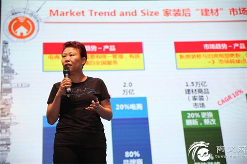 随后,就轮到特邀嘉宾天猫家装总监橙龙分享《天猫如何赋能陶瓷卫浴品牌发展电商》的主题演讲。橙龙在谈到赋能陶瓷卫浴时,他认为将半成品成品化是十分重要,他希望商家可以提供全渠道或者是商务的解决方案,或者是系统解决方案,满足我们品牌商为消费者服务的需求,而不是只单单提供产品。最后,橙龙也希望佛山的陶瓷行业以及卫浴行业的商家朋友能够走在时代的前面,主动拥抱变化、做出改变。
