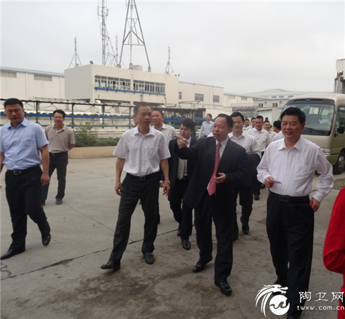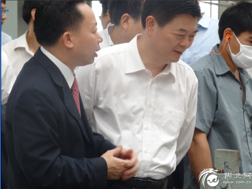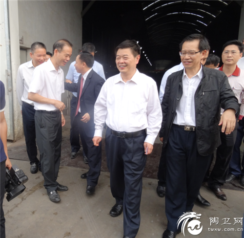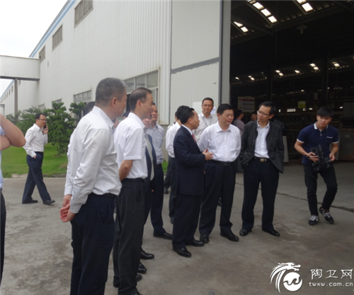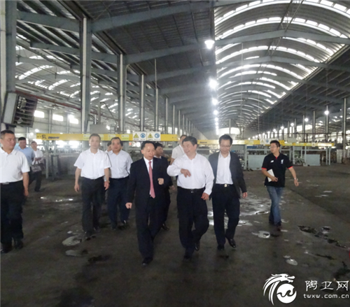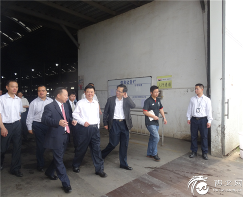 阳江市市委书记陈小山(右)在广东博德精工建材有限公司董事长叶荣恒(右2)陪同下考察博德阳西生产基地