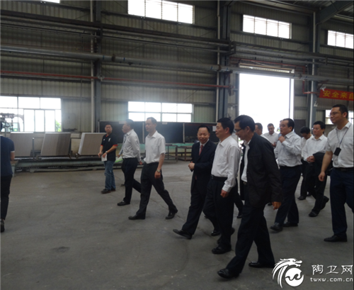 随后在叶董事长的带领下,考察团先后参观了仿古砖窑炉、抛光砖车间以及检选车间。参观期间,叶荣恒董事长说道:“我们博德品牌连续5年在全中国陶瓷行业出口量第一,已在全球30多个国家和地区注册了国际商标,产品畅销数十个国家和地区。”在检选车间,陈小山停驻脚步,问起博德公司产品质检标准问题,叶董事长详尽地跟陈小山谈起我们的产品检选流程以及检选的要求等。