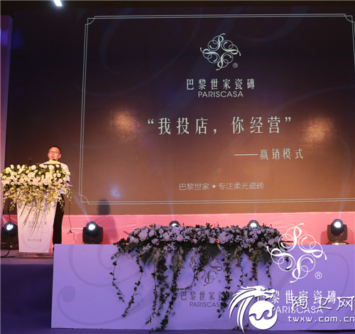4月17日晚,巴黎世家 “我投店 你经营”赢销模式成功经验分享会暨2016悦色新品鉴赏会于巴黎世家总部展厅完美落幕。参加本次活动的有巴黎世家瓷砖创始人董事总经理邓贤志、广州国际设计周执行总监贺文广、中国陶瓷总部运营总经理汤洁明、开平立鑫建材厂长闫志勇、开平立航建材厂长骆建军等出席嘉宾陶瓷资讯、陶卫网在内的20家行业权威媒体、100位来自全国各地的经销商朋友近200人见证本次活动。