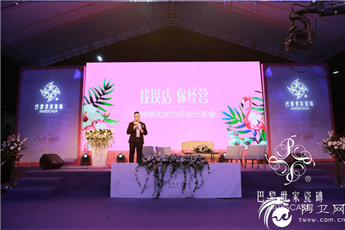 巴黎世家销售总监叶国胜则带来“我投店 你经营”赢销模式的深度解读,他声情并茂地描绘了帮扶新老客户的建店的壮丽蓝图。