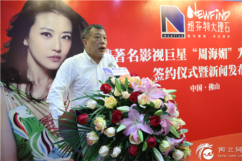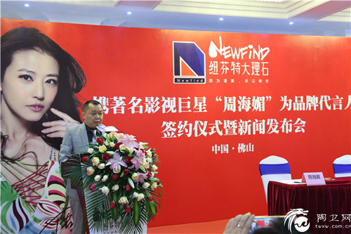 著名香港影视巨星周海媚小姐则表示十分荣幸能作为纽芬特大理石瓷砖的形象代言人出席这次签约会,对纽芬特陶瓷的企业实力表示赞许,并对其日后发展送上祝福。