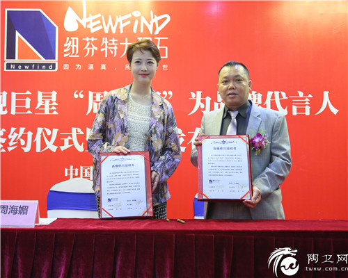 品牌形象代言人周海媚小姐与纽芬特陶瓷成功签约