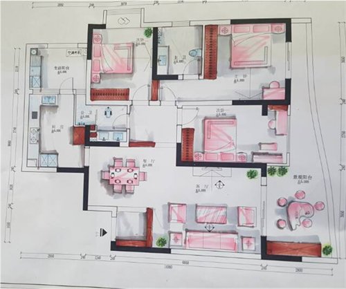 施路远评委诊断:加设飘窗两侧柜体,用于衣物储纳;用书桌代替原衣柜方便学习,减少一个床头柜,腾出空间;主卧的梳妆椅改成无靠背的凳子,可放于台下的,有利于空间利用。施老师建议从居者生活细节出发,尽可能考虑在空间的生活轨迹。