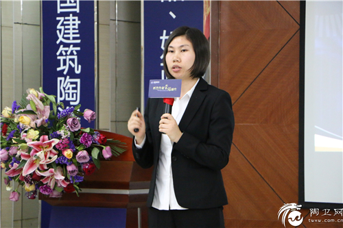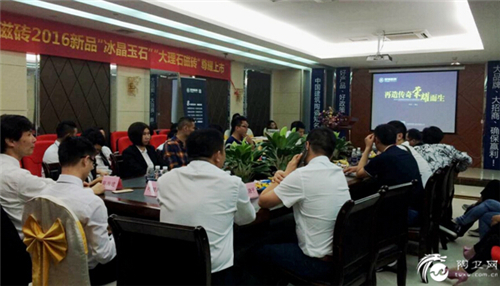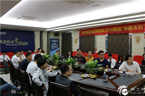 接着,产品部产品设计主管张春艳女士对昊博磁砖产品、2016年春季新品从生产设备、产品特色卖点、市场前景、同行业产品对比优势几方面做了全方位的讲解。