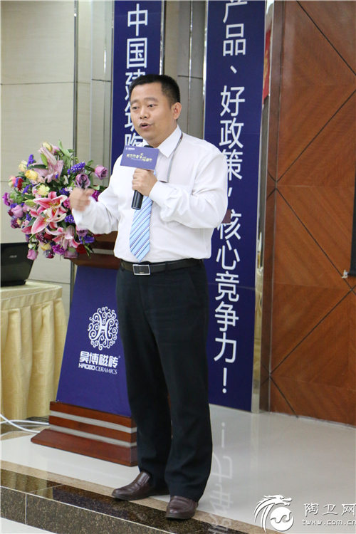 接下来由昊博事业部副总经理林益君先生详细介绍了昊博磁砖品牌。林总从企业实力、品牌介绍、新客户招商政策三大板块深入浅出的传达出企业的实力、品牌的力量和真诚有效合作的信心,现场意向经销商同样也表现出对品牌极大的关注。